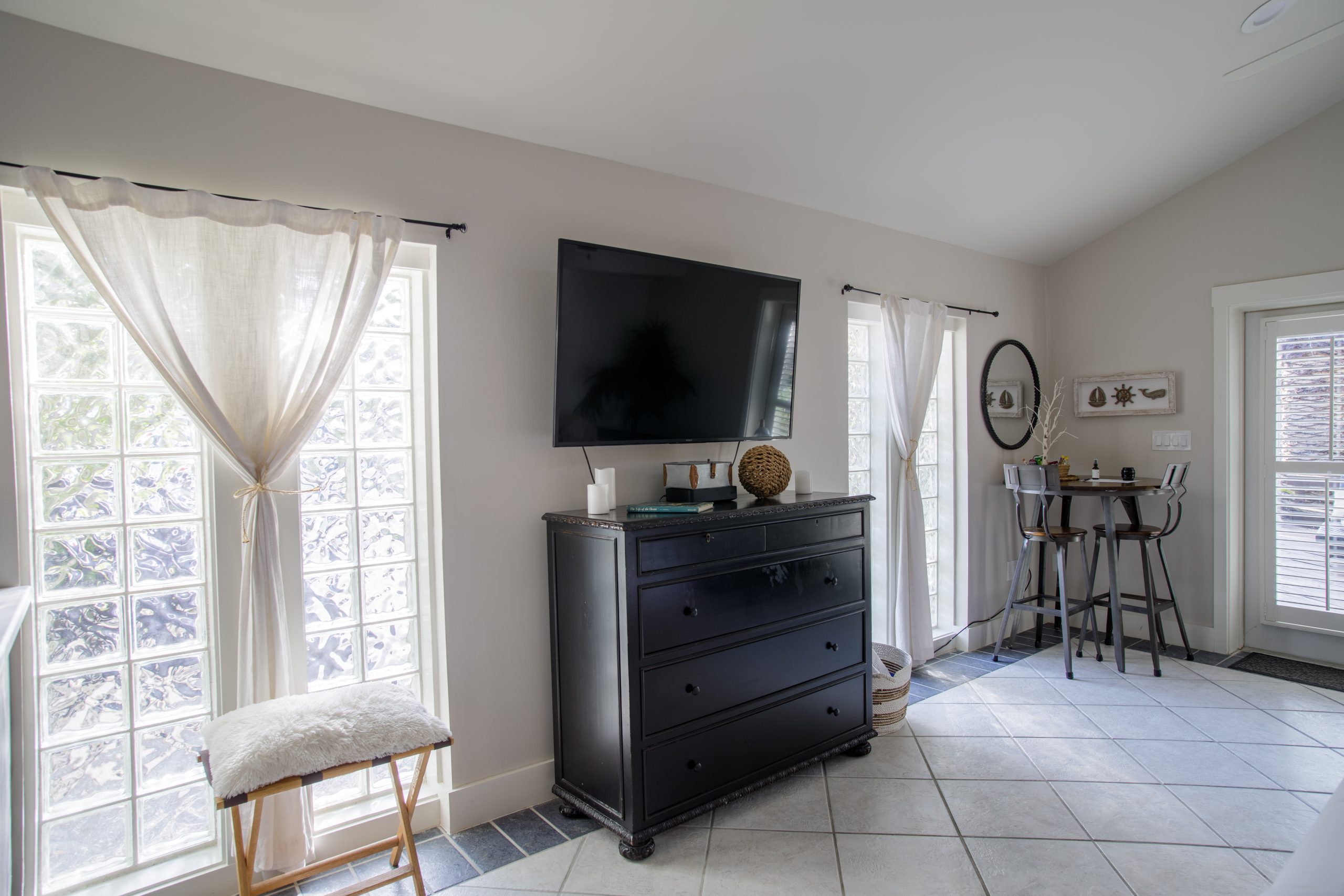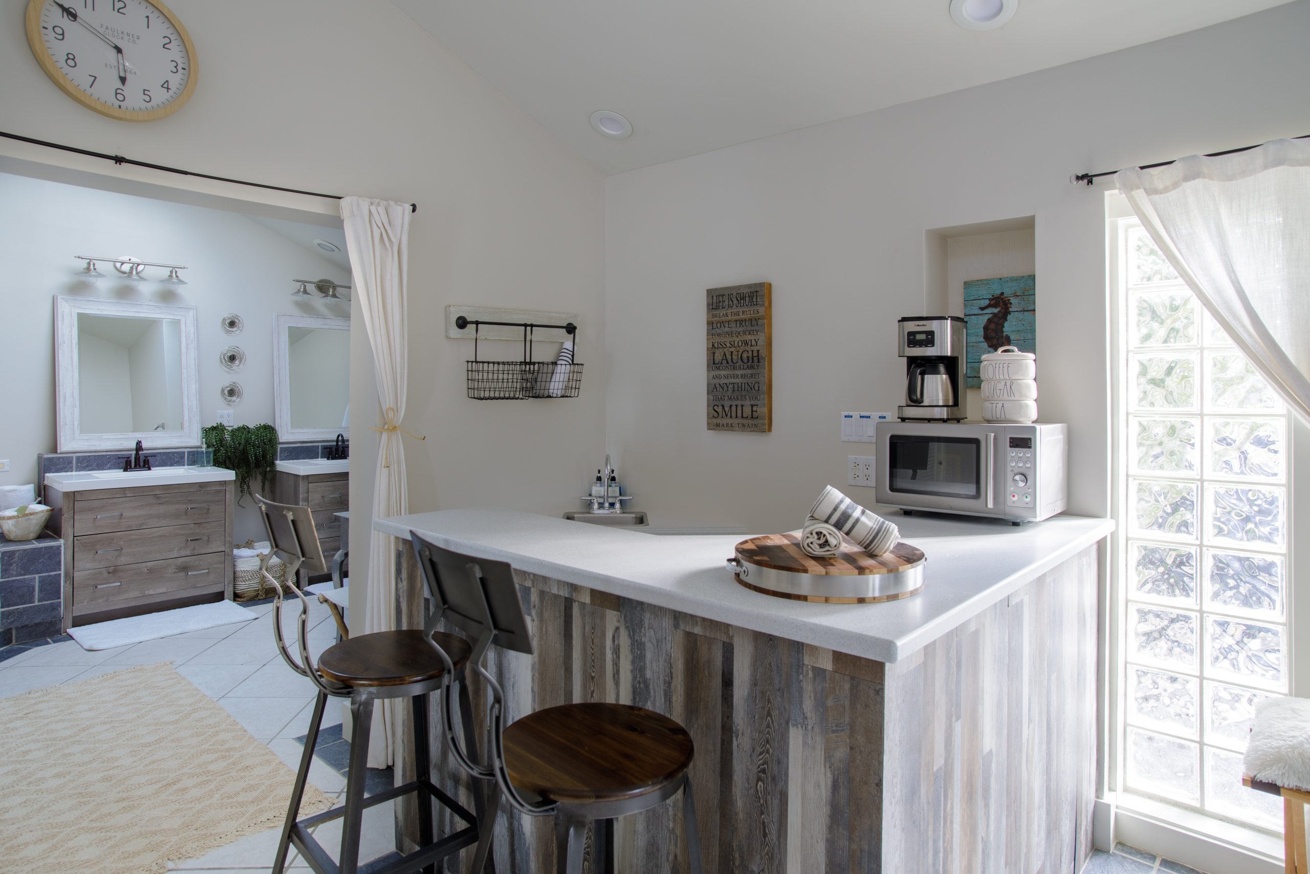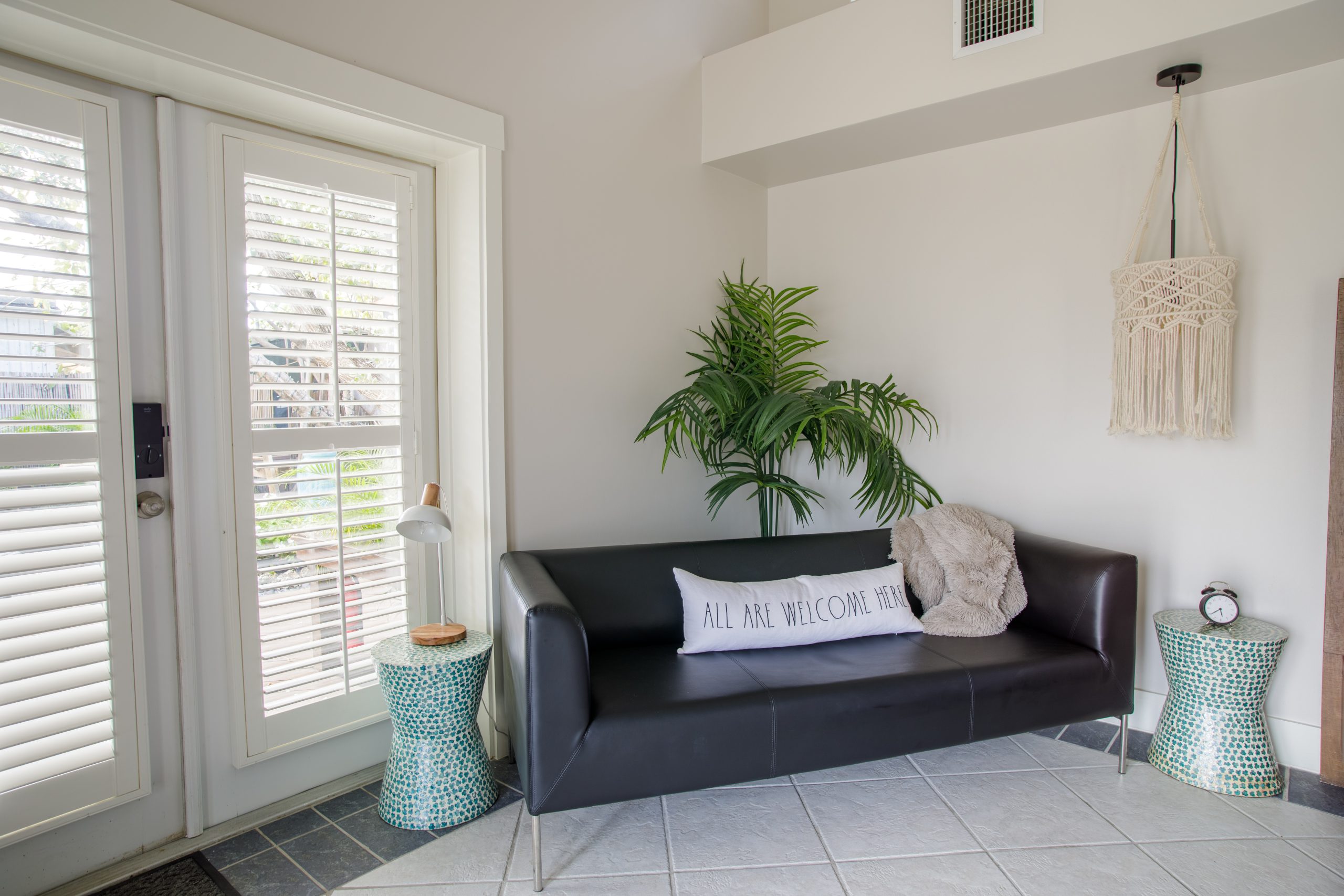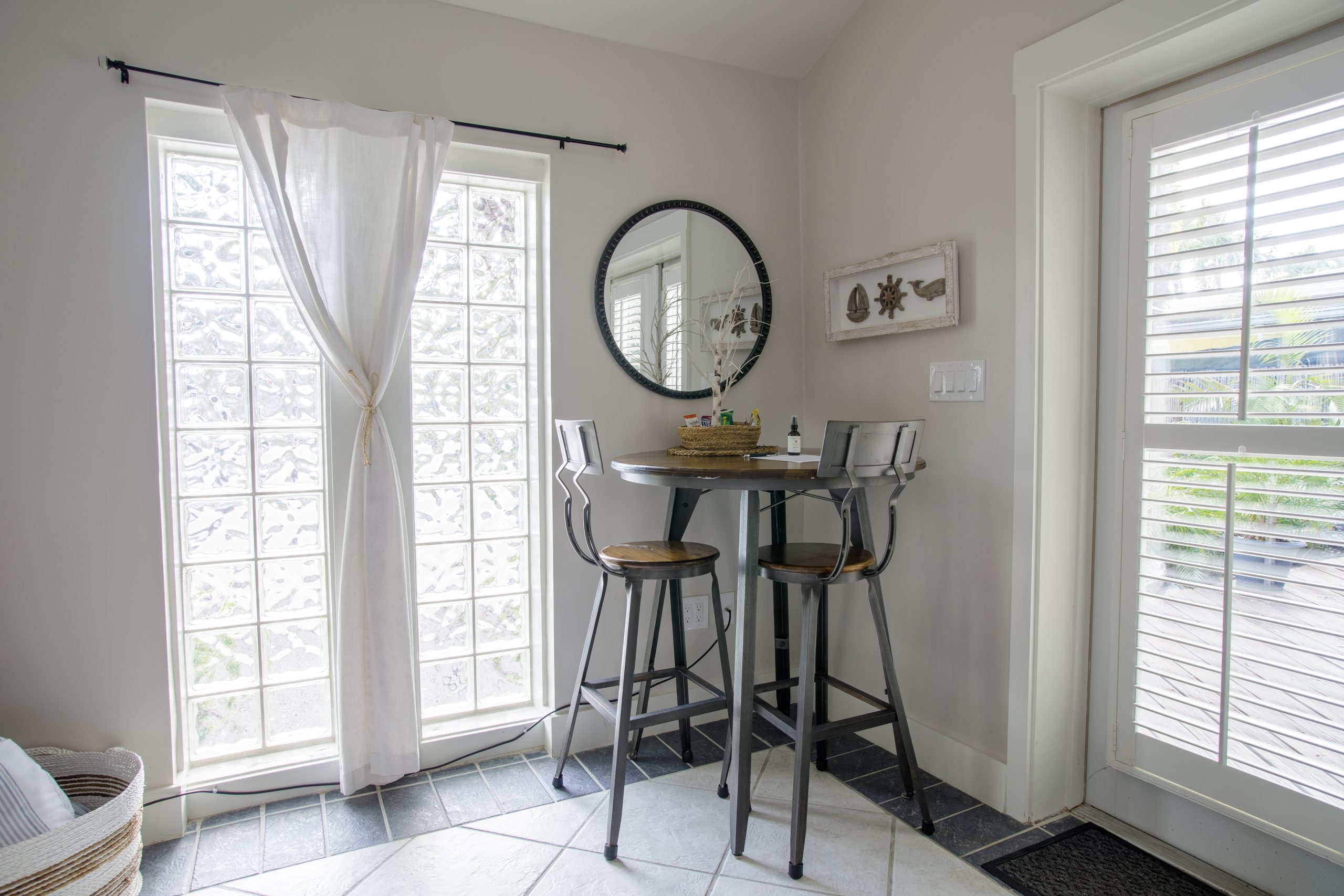 Please Note: The Palm Suite is one of only two guest suites, separate from the Main Residence. The two suites have exclusive use of the lush backyard oasis with tropical trees, plenty of seating areas to enjoy dining alfresco while taking in the natural sounds of local wildlife. There is also a shared propane BBQ on the deck and an additional refrigerator with extra storage and ice located next to the complimentary cruiser bikes! The Palm and Banyan Suites each accommodate a maximum of 2 adults – Special accommodations for children may be made if both guest suites are booked together.