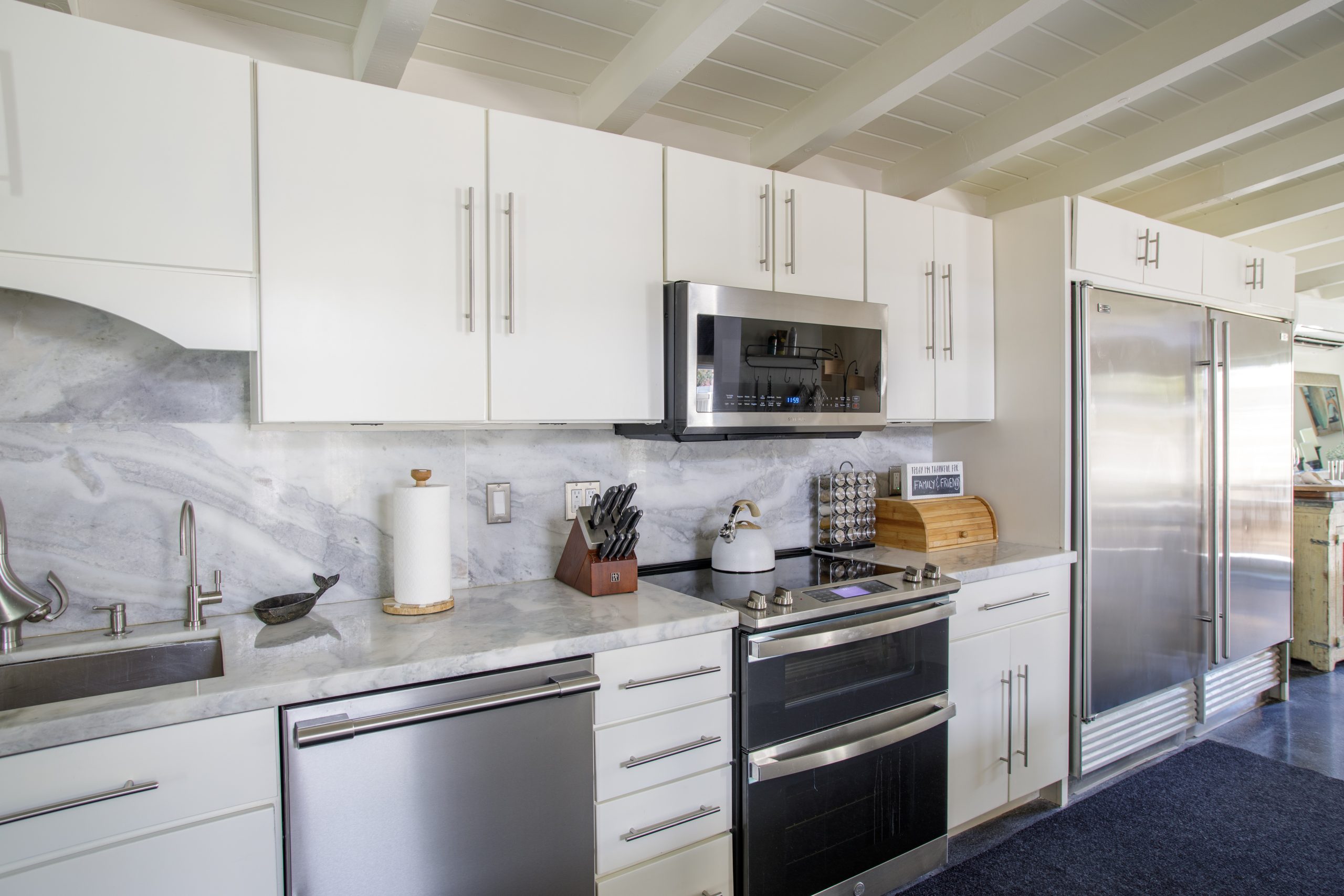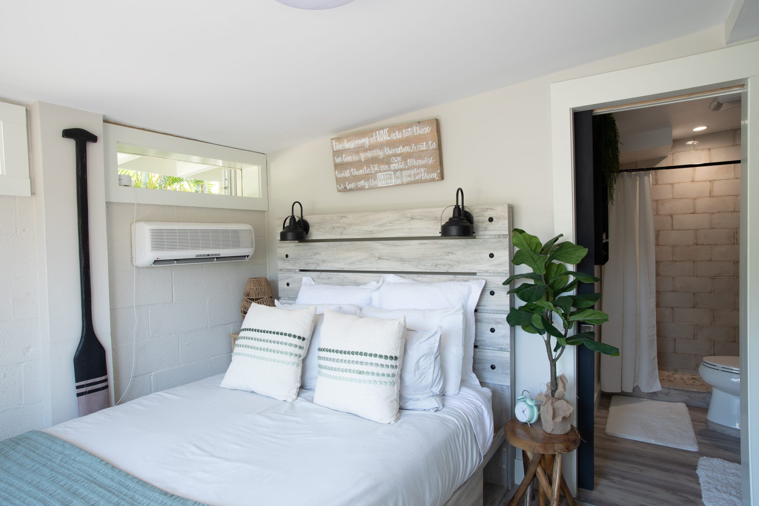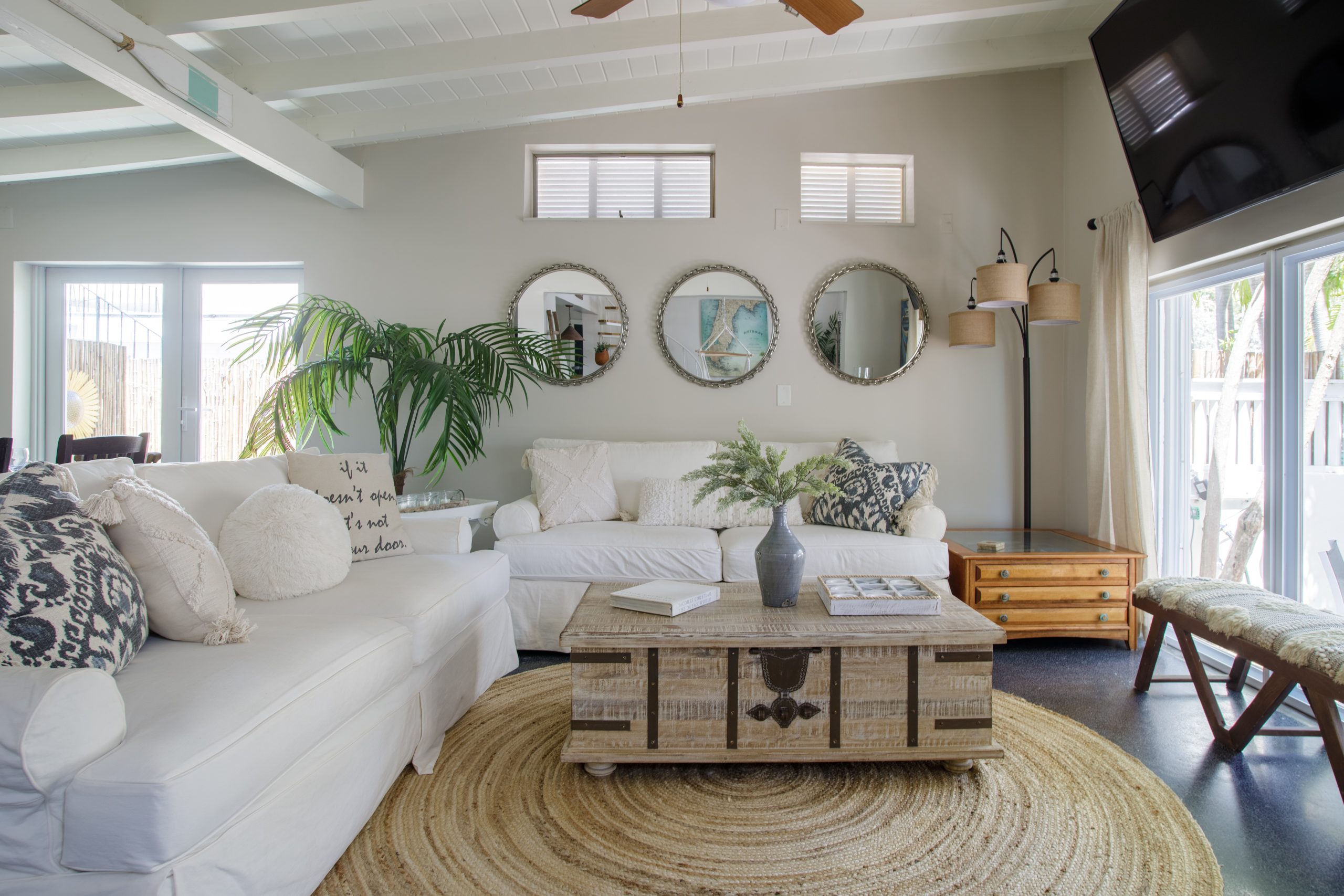 The second downstairs queen bedroom features a brand new en-suite private bath, washer/dryer closet & sliding door that also opens to the lush side yard with easy access to the complimentary cruiser bikes. Split A/C units in all the rooms ensure a cool escape from a long day of tropical fun.